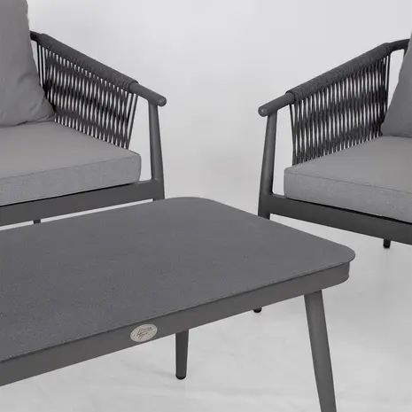 Hall alumiiniumraam nöörpunutisega, hallid padjad.