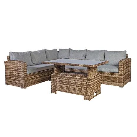 Aiamööblikomplekt Zurich patjadega: laud ja nurgadiivan.