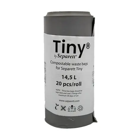 Komposteeritav jäätmekott mahuga kuni 14,5 l. Sobib Separett kuivkäimlale Tiny. Rullis 20 kotti.