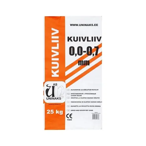 Avaleht/Ehitusmaterjalid/Teekatted/Täiteained/Liiv/KUIVLIIV (Uninaks) 0-0,7 mm, 25kg