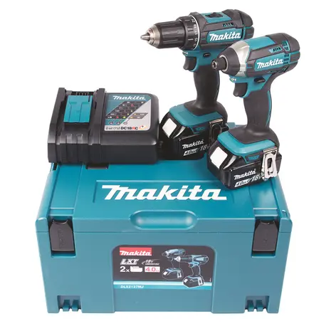 Komplektis akutrell DDF482 ja akulöökkruvikeeraja DTD152 Mackpack kohvris. Kaks 4,0 Ah Li-on akut ja laadija.