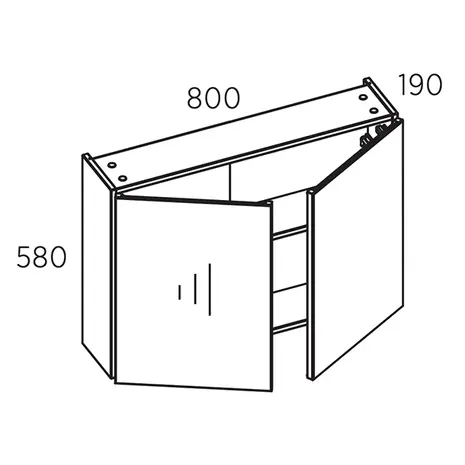 • Mõõdud: laius 800 mm, kõrgus 580 mm, sügavus 190 mm
