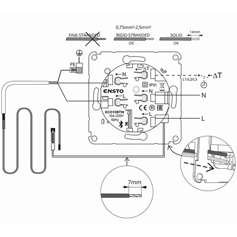 Termostaat eluruumide põrandakütte juhtimiseks. Täpset ja nutikat elektroonilist termostaati on võimalik reguleerida käsitsi või Bluetooth ühendusega mobiilirakenduse Ensto Heat Control kaudu (Android ja iOS).