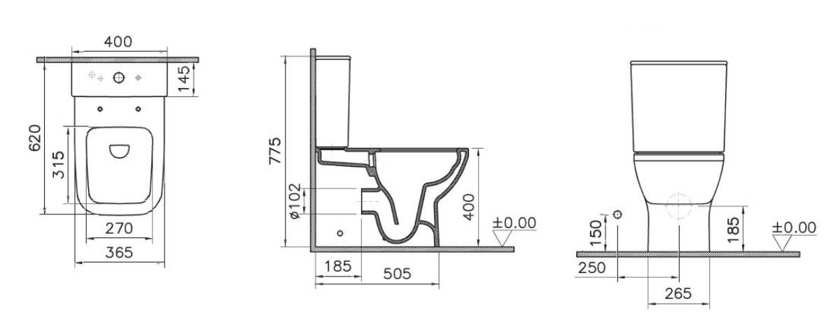 Wc pott Vitra Integra Square Rim-Ex, koos vaikselt sulguva prill-lauaga