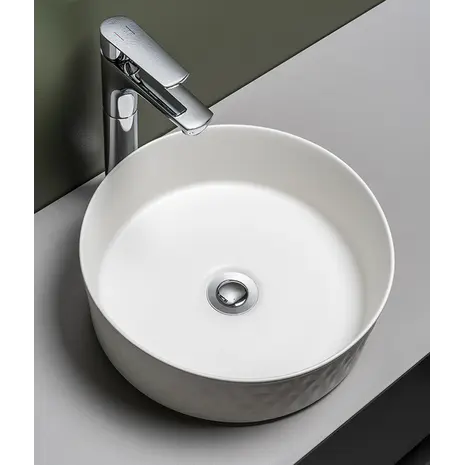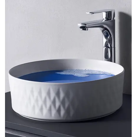 Pilkupüüdev reljeefse välispinnaga portselanist valamu.