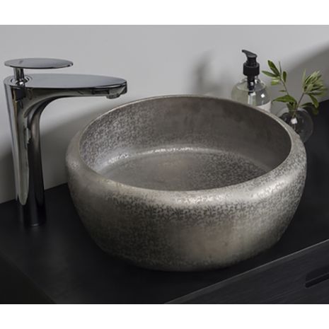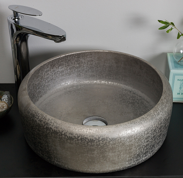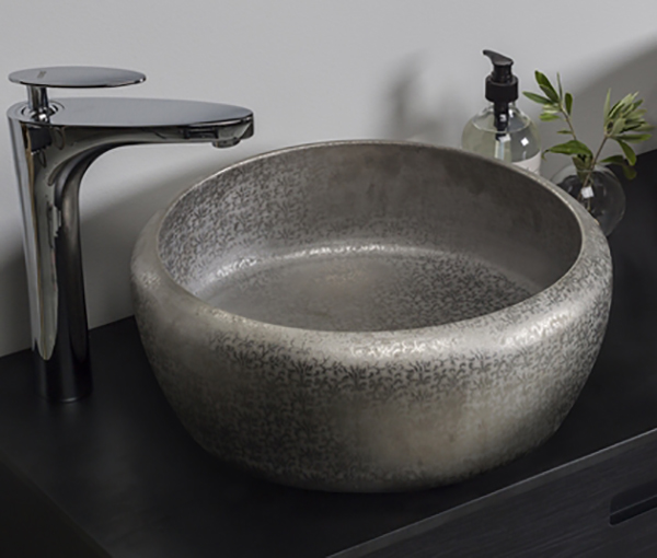 Pilkupüüdev erilise mustriga portselanist pinnapealne valamu.