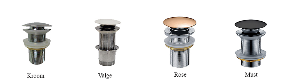 Valikus eri toonidega äravoolud. Segisti ei kuulu komplekti.