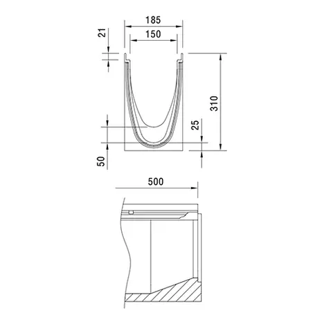Avaleht/Ehitusmaterjalid/Teekatted/Sademevee ärajuhtimine/Renn-kanal ACO MULTILINE V 150, pikkus 50cm (rennikorpus astmelise kaldega 5cm), tsingitud terasest äärikuga