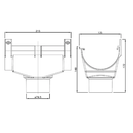 Avaleht/Ehitusmaterjalid/Katusekatted/Vihmaveesüsteemid/Vihmaveesüsteemid PLASTMO (plastikust)/Renni paisulõtkuga allaviik PLASTMO ⌓125mm (72x120mm) vihmaveetorule Ø75mm
