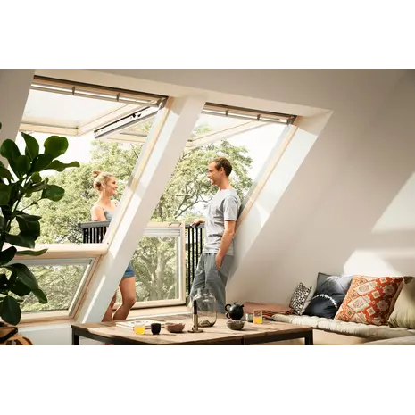 VELUX Cabrio® muudab katuseakna sekunditega rõduks, et saaksite astuda välja värske õhu kätte, ise kodust lahkumata. Suurepärane lahendus toa laiendamiseks väljapoole ja ühtlasi tagab see parima võimaliku vaate. Kombineerige see ülahingedega katuseakna ja fikseeritud alumise elemendiga, et nautida veel paremat vaadet, tõhustada ventilatsiooni ja lasta tuppa rohkem päevavalgust. Suurepärane viis lisaväärtuse ja erakordsuse andmiseks kinnisvarale.