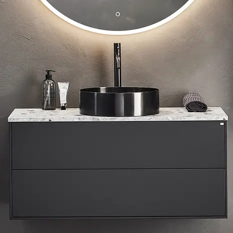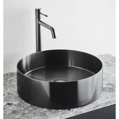 Õhuke pinnapealne roostevabast terasest valamu stiilse harjatud viimistlusega. Sobib kasutamiseks kõrge valamusegistiga.