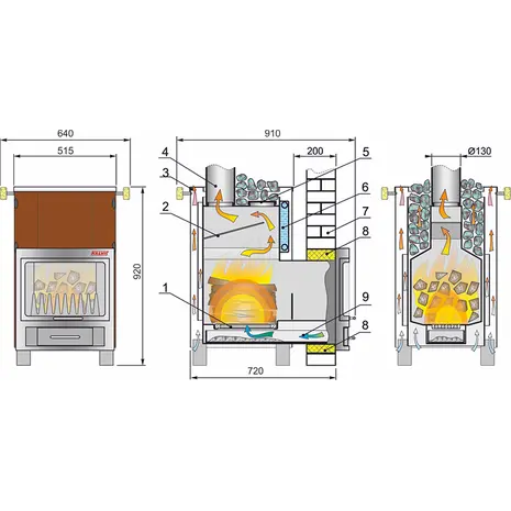 Saunakeris PR2-1 on läbi seina köetav. Kerisel on suur panoraamklaasiga uks, mis jätab visuaalselt koldest suurema mulje, nagu tegu oleks kaminaga. Kuna uks on piisavalt suur, saab peale mõnusa tulekuma nautida ka läbi klaasi tuppa õhkavat soojust.