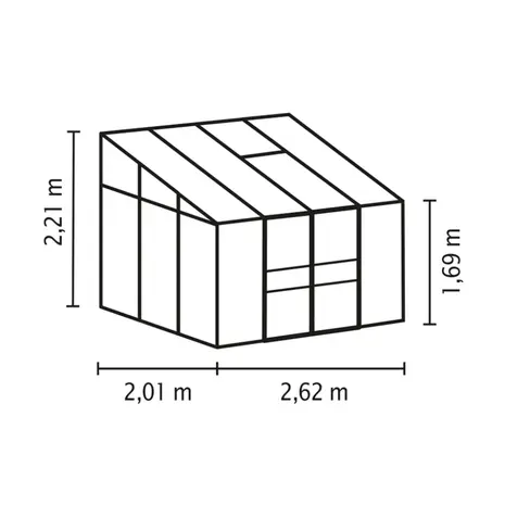 Seinaäärne kasvuhoone Ida 5,2m²/ 2,01x2,62m (karastatud klaas +PC)