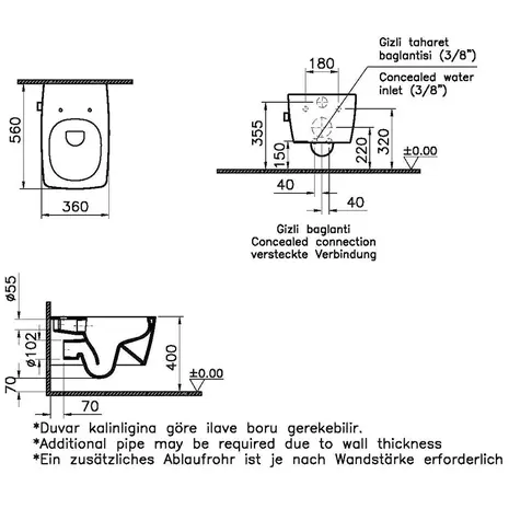NB! Paigaldades bideesegistile sooja- ja külmavee väljavõtteid, tuleb lähtuda WC seinaelemendi konstruktsioonist. Vee väljavõtted tuleb paigalda nii, et need ei segaks hilisemat WC poti paigaldust.