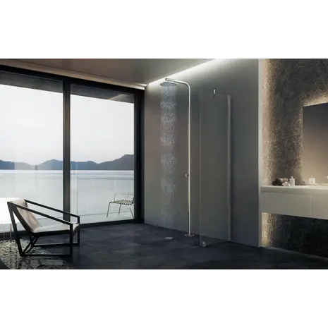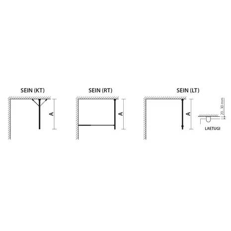 EXTRA-LINE: erimõõdus dušisein, 6 mm või 8 mm karastatud sirge klaas (kirgas või toonitud), anodeeritud või läikiv seinaprofiil, erinevad klaasitoed, kinnitustarvikud.