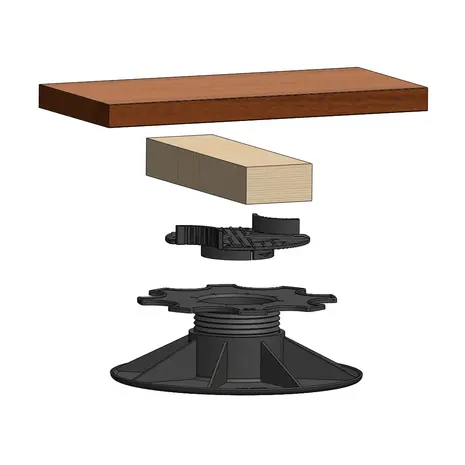 Kuna jalgade kõrgus on väga täpselt reguleeritav, saab terrassi paigaldada täiesti tasasena, olenemata aluspinna kaldest või liigist. Süsteemi on lihtne paigaldada ehitus- ja lammutustöödeta ning see võimaldab terrassi sujuvalt hoonega ühendada.