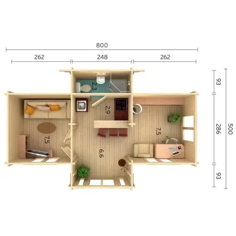 - Katuse pindala/kaldenurk: 46,7 m² / 25,3º, 20,9º