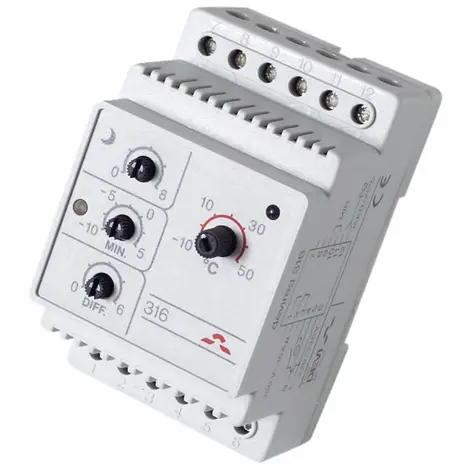 Diferentsiaaltermostaadina saab Devireg™ 316-t kasutada põhiliselt vihmaveerennikütte juhtimiseks. Vihmaveerennides tekib jää nullilähedastel temperatuuridel ning seega pole mõtet renne kütta ei suure miinuse ega plussiga. Samuti kui temperatuur läheb madalamale -10˚C, sajab lund harva ning isegi kui sajab, on see kerge, lihtsalt puhastatav ja ei jäätu. Seega säästab devireg™ 316 lülitades kütte välja suurte miinuste juures sellega energiat.