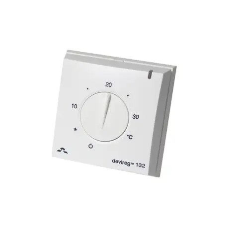 - DEVIreg™ 132 on elektrooniline termostaat, mis paigaldatakse otse seinale, varustatud ruumianduriga, millega juhitakse ruumitemperatuuri, ja täiendav põrandaandur, millega piiratakse maksimaalset põrandatemperatuuri.
