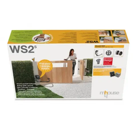 Mhouse WS2S automaatika komplekt päikesevalmidusega on mõeldud tiibväravale, kus kumbki väravaleht võib olla mõõtmetega kuni 2m ja 200kg. Automaatika sobib eriti hästi puidust või PVCst väravatele. Lihtne ja kiire paigaldus. Avamis- ja sulgemisaeg maksimaalselt 10 sekundit. Komplekt sisaldab 1 mootorit koos kontrollsüsteemiga ja 2 mootorit, 2 kaugjuhtimispulti, 2 fotoelementi, 1 signaallamp koos sisseehitatud antenniga.