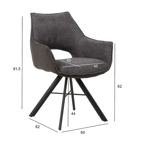 Tool Eddy mõõtudega 60 x 62 cm, kõrgus 81,5 cm, tumehall