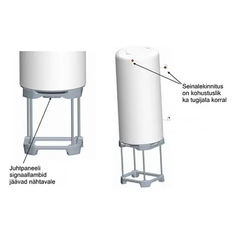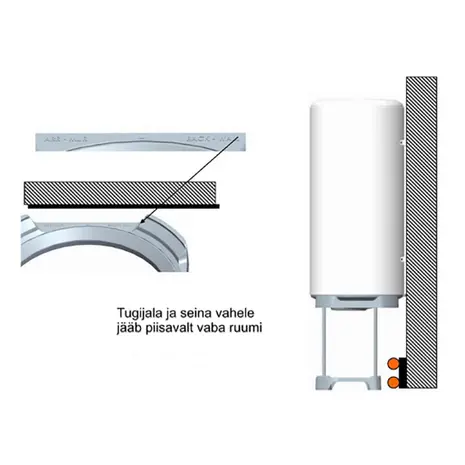 Tugijalg boilerile Zeneo. Seinakinnitus on kohustuslik ka tugijala korral. Juhtpaneeli signaallambid jäävad nähtavale. Tugijala ja seina vahele jääb piisavalt vaba ruumi.