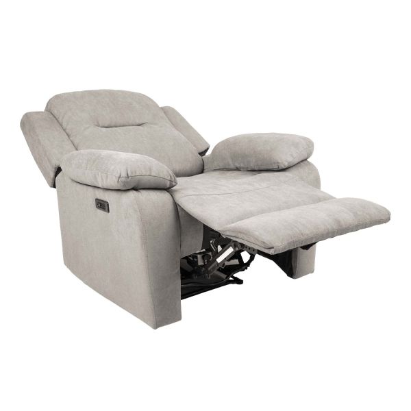 Recliner tüüpi tugitooli jalatoe asendit on võimalik muuta elektrilise mehhanismi abil. Jalatuge üles tõstes liigub seljatugi sujuvalt kaasa. Kattematerjal: 100% polüesterkangas.