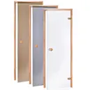 8 mm karastatud klaas Klaasi toon: kirgas Lehtpuu-liimpuidust ukseleng Ümar uksenupp Reguleeritavad hinged Abloy Rull-lukk Tihend...