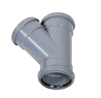 Avaleht/Vesi / küte / vent/Sisekanalisatsioon/Kanalitorud UPONOR/Toruliitmikud (Ø32-110mm)/Kanalisatsioonitoru muhvkolmik UPONOR Ø75x75mm 45° (1051232)
