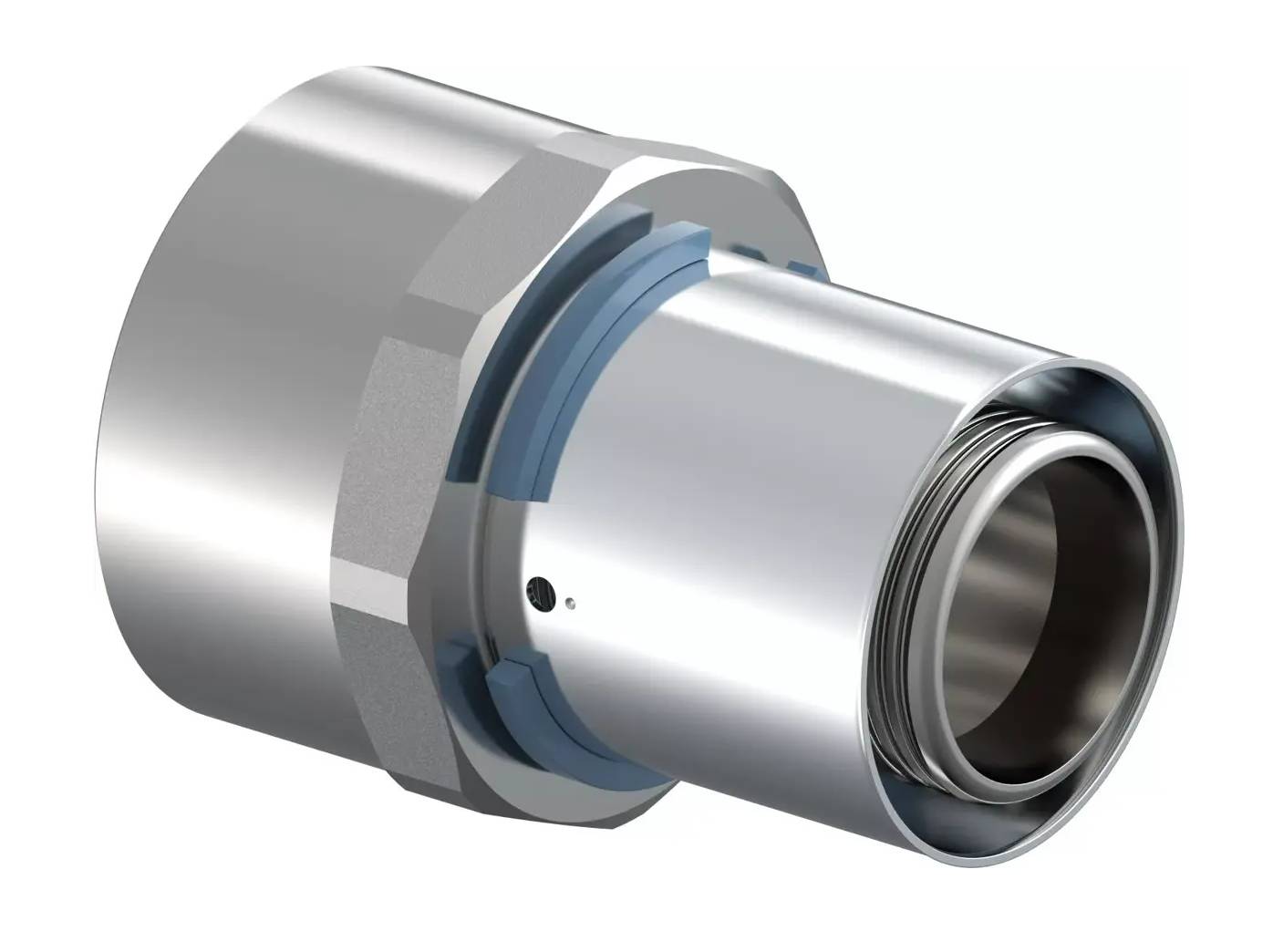 Tinatatud messing. Fikseeritud presshülsiga, värvkood stoppervõru ja lekkeindikaatoriga. Silindriline sisekeere vast. EN 10226‑1.