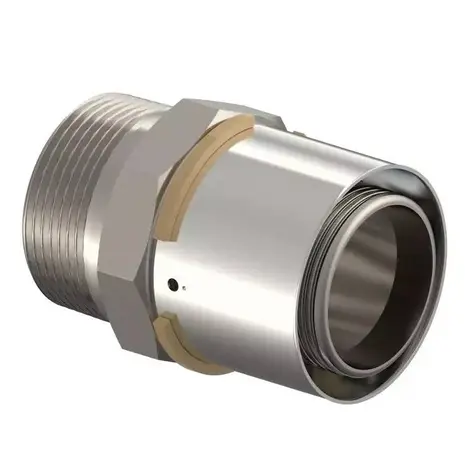 Tinatatud messing. Fikseeritud presshülsiga, värvkood stoppervõru ja lekkeindikaatoriga. Silindriline sisekeere vast. EN 10226‑1.