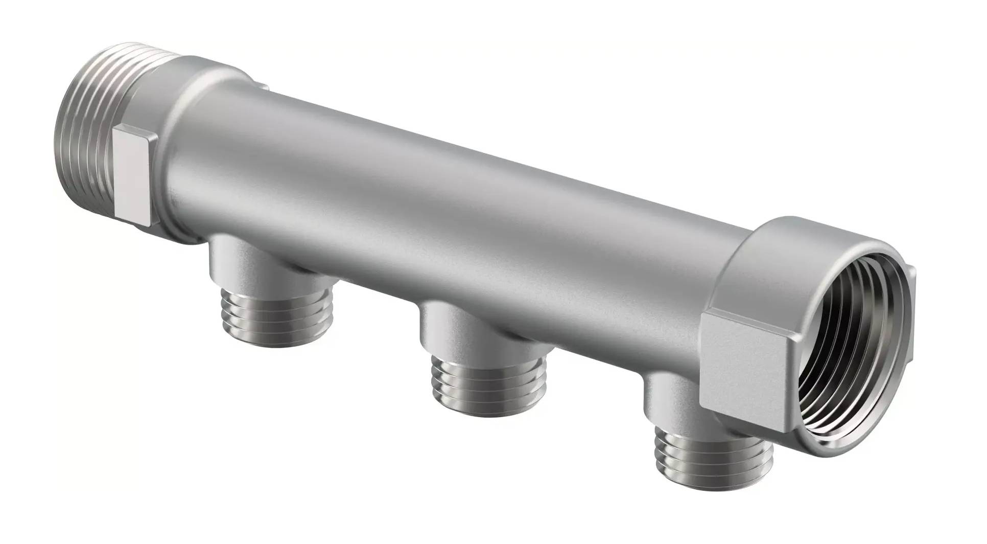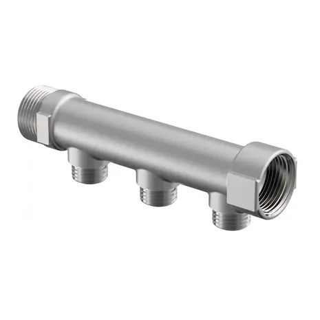 Tinatatud messing. Otsad 1" VK/SK, väljundid 1/2" VK. Ühendamiseks Uponor surveliitmikega.