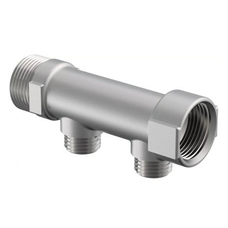 Tinatatud messing. Otsad 1" VK/SK, väljundid 1/2" VK. Ühendamiseks Uponor surveliitmikega.