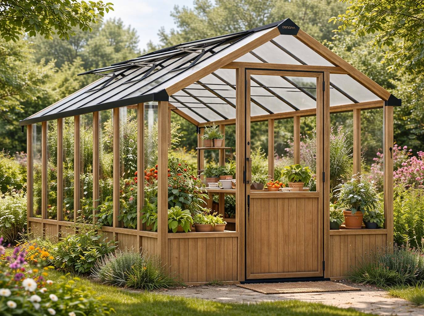 Kasvuhoone madal lävepakk muudab läbipääsu lihtsaks. Lai lukustatav madala lävepakuga välisuks muudab taimede ja tööriistade sisse- ja väljaviimise lihtsaks. Sisseehitatud vihmaveerennide süsteem võimaldab koguda vihmavett.