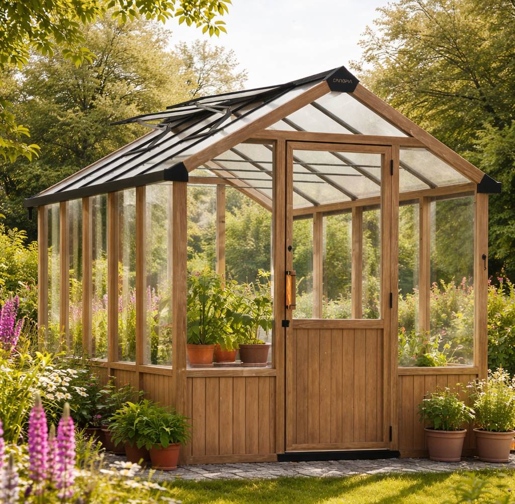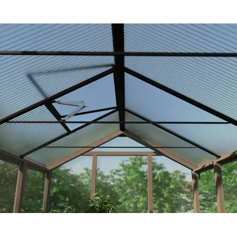 Kasvuhoone on valmistatud looduslikult vastupidavast seedripuust ja UV-kaitsega polükarbonaatpaneelidest.