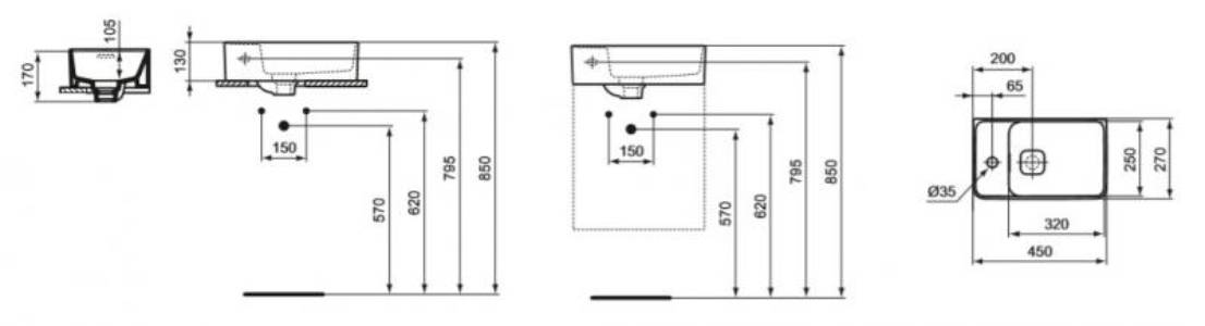 Valamu Ideal Standard Strada II 450x270x170mm vasak