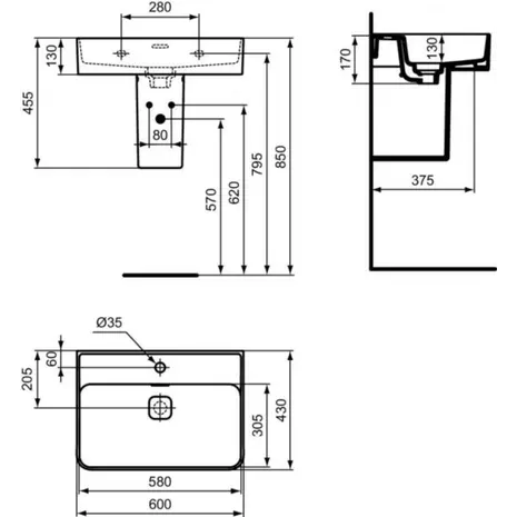 Avaleht/Santehnika / saun/Valamud ja segistid/Vannitoa valamud/IDEAL STANDARD valamud/Valamu Ideal Standard Strada II 600x430x170mm
