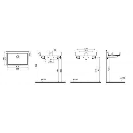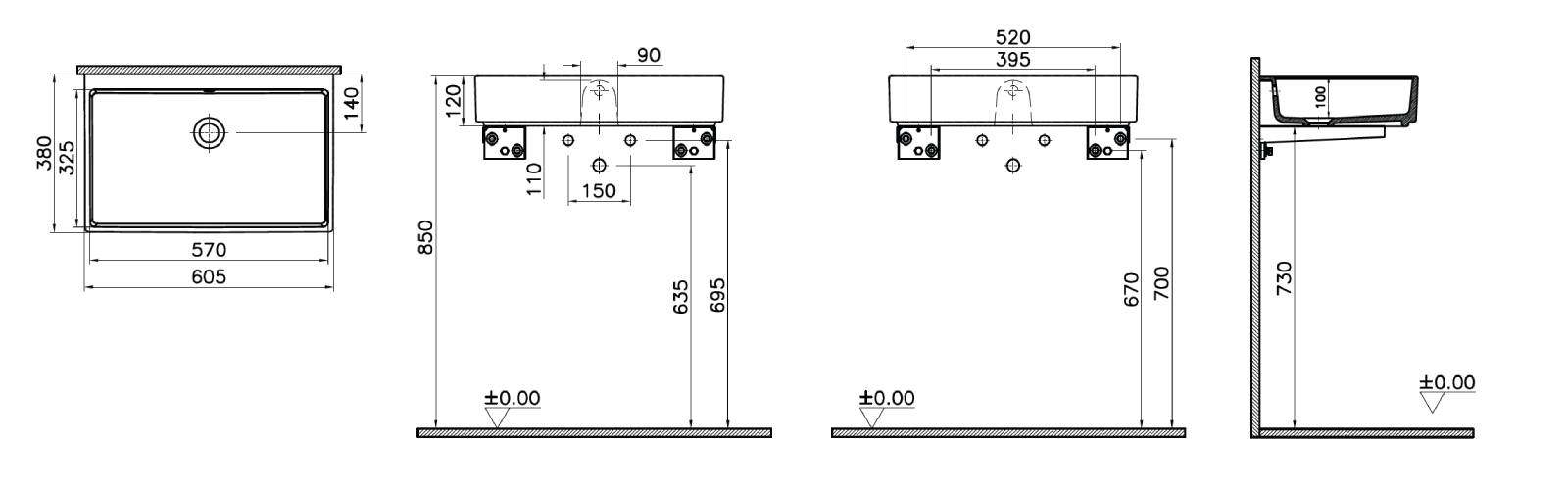 Valamu VitrA ArchiPlan 60,5cm, Hygiene kattega
