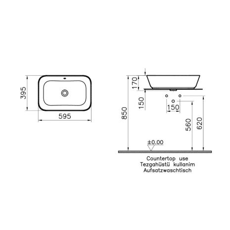 Valamu VitrA Geo 60cm tasapinnale, matt valge