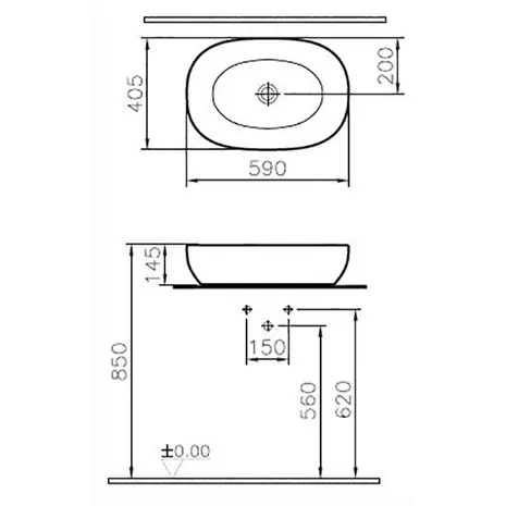 Valamu VitrA Outline Oval 60cm tasapinnale, valge