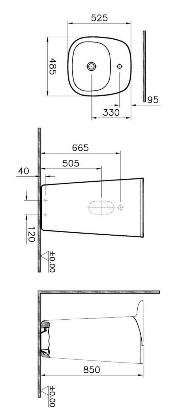 Valamu VitrA Plural 50cm põrandale, matt terra rosa