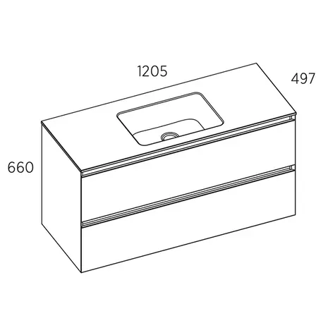 • Mõõdud: laius 1205 mm, kõrgus 660 mm, sügavus 497 mm