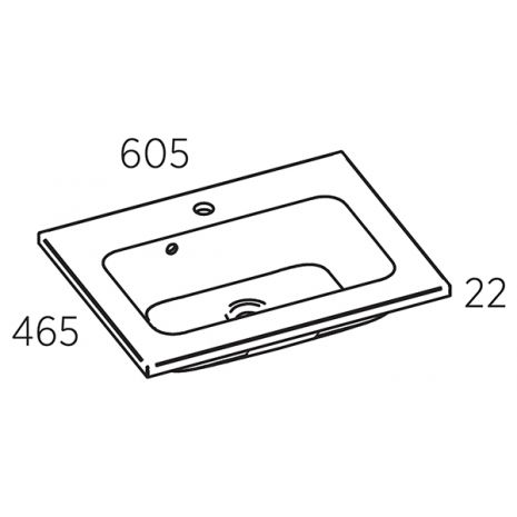 - Nova GelCast läikiva viimistlusega integreeritud valamu mõõtudega 605 x 465 x 22 mm