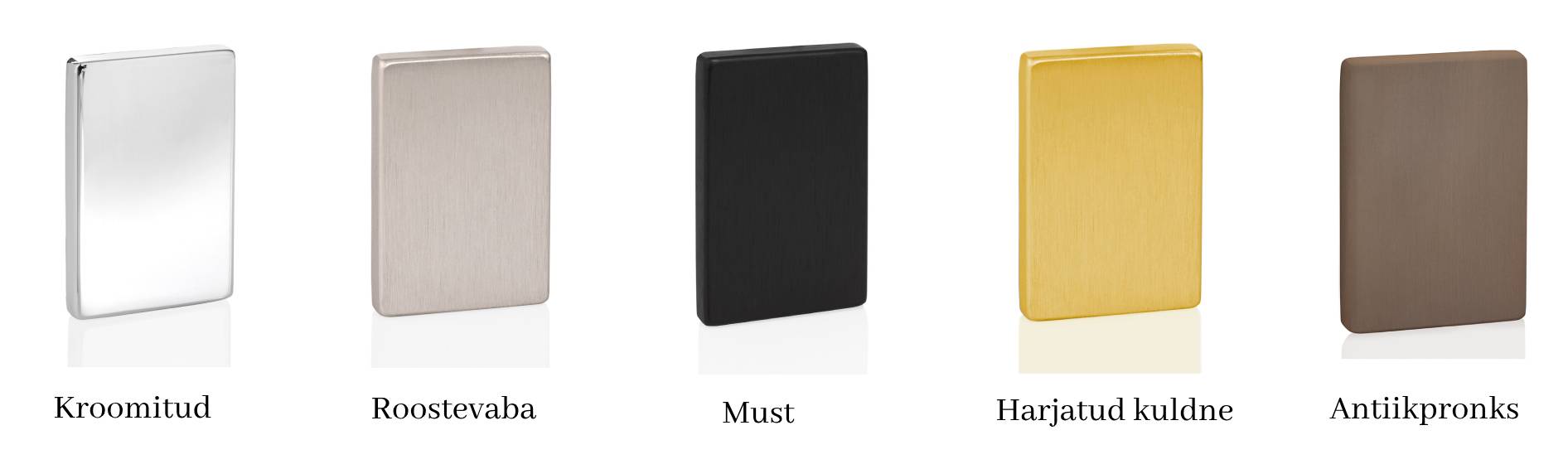 Võimalikud furnituuri viimistlused: kroomitud, roostevaba teras, must, harjatud kuldne, antiikpronks.