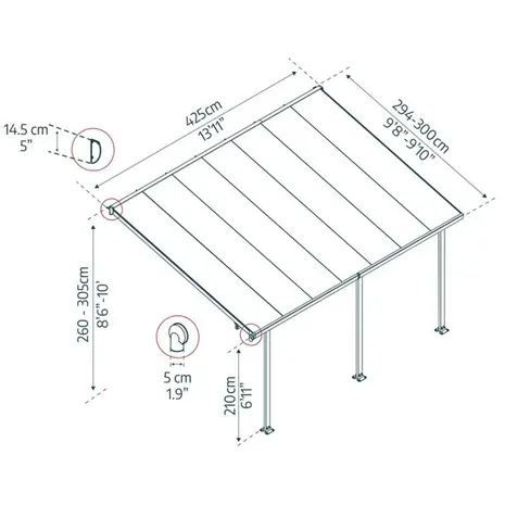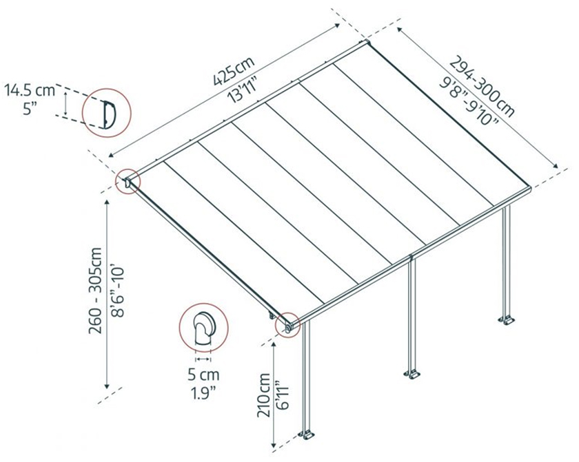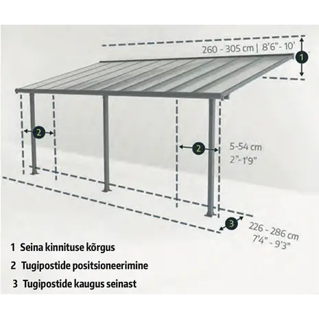 - Reguleeritavad postid ja seinakinnitusplaat võimaldavad katuse sobivat positsioneerimist