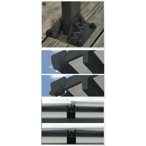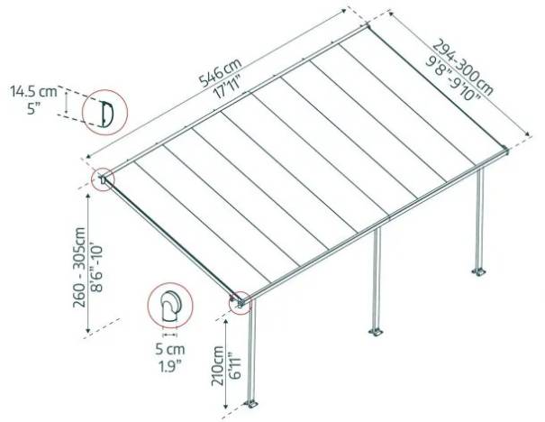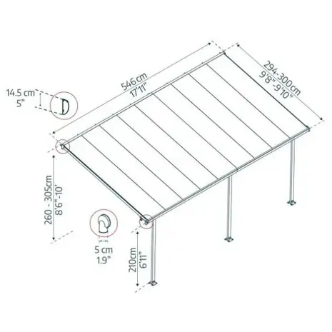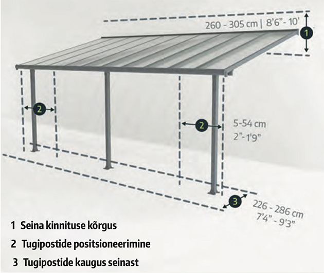 - Reguleeritavad postid ja seinakinnitusplaat võimaldavad katuse sobivat positsioneerimist