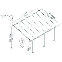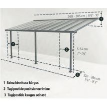 Varikatus terrassile Feria 3x5,46m hall/kirgas (8mm polükarbonaat)