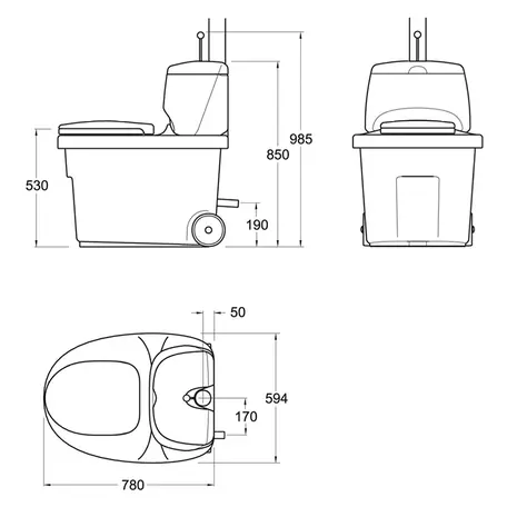 Jäätmemahutis on kaks eraldatud siseanumat: uriin eraldatakse tahkest väljaheitest juba istmeosas. Tänu käimlamahutist katusele viivale ventilatsioonitorule ei teki ruumis ebameeldivat lõhna. Seadme siledaid plastpindu on kerge puhastada. Komplektis soojustatud prill-laud. Kasutajasõbralik kuivatusaine doseerija.