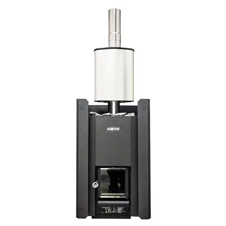 Stiilses Harvia Thermio boileris soojeneb vesi kiiresti, kuna suitsutoru läbib paaki ja moodustab selle