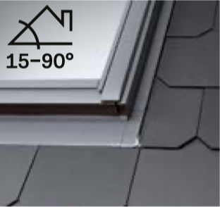 Ühe eraldiasetseva vertikaalse katuseakna paigaldamiseks mõeldud veeplekid EDS S00S01, mis sobivad siledale katusekattematerjalile paksusega kuni (profiilikõrgusega) 16 mm.